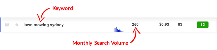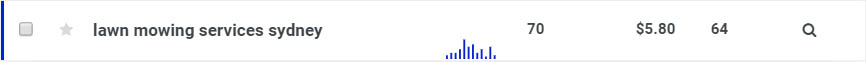 Above, we can see the keyword “lawn mowing Sydney” is searched by approximately 260 people each month. It’s important to keep in mind that there are many variations of this keyword that a user could search, each with its own search volume. Find one more example below.