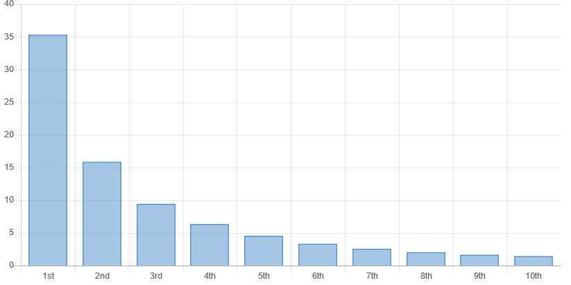 On average, over 85% of people using search engines never look past the first page on Google. Furthermore, if you find yourself outside of the top 3 positions on Google then the chances of someone clicking through to your website significantly drop with each position. The chart below depicts this perfectly.